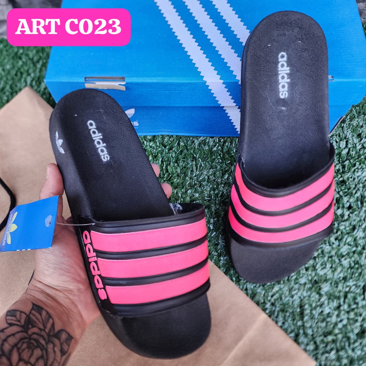 ART C023 OJOTA ADIDAS ADILETTE BLACK/PINK 38 39
